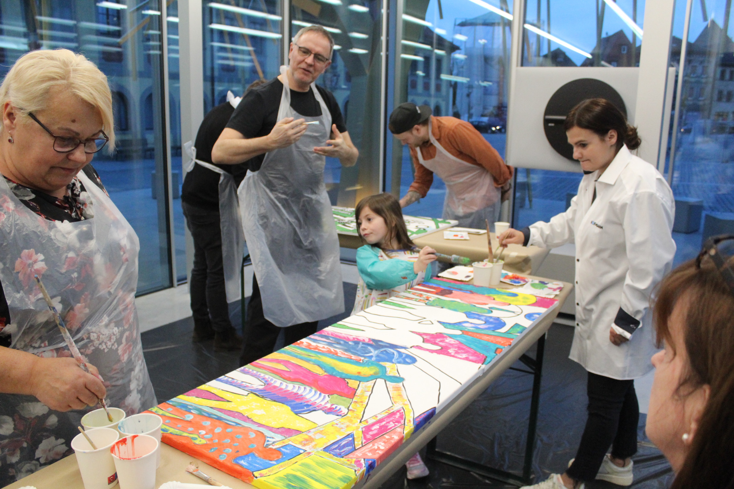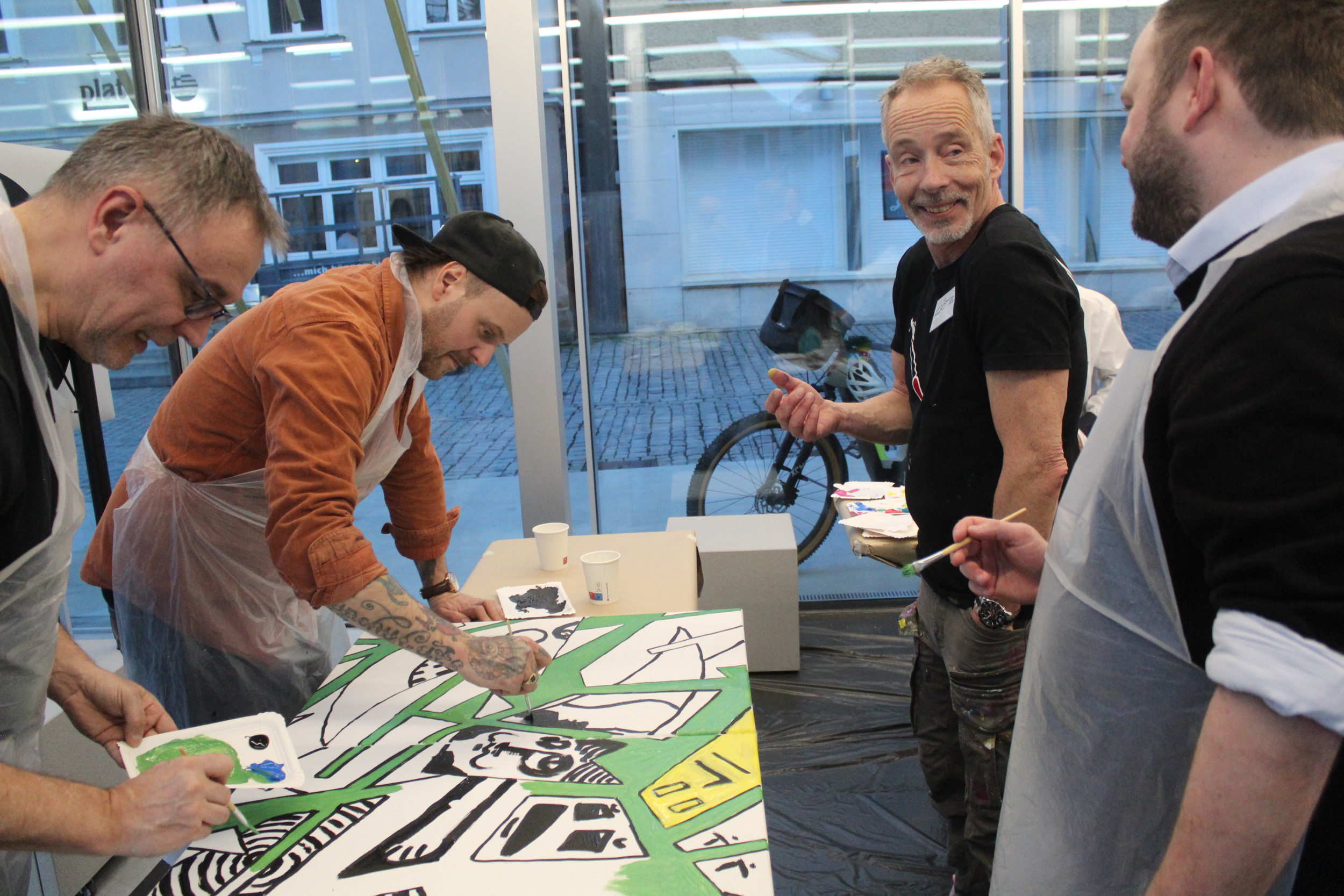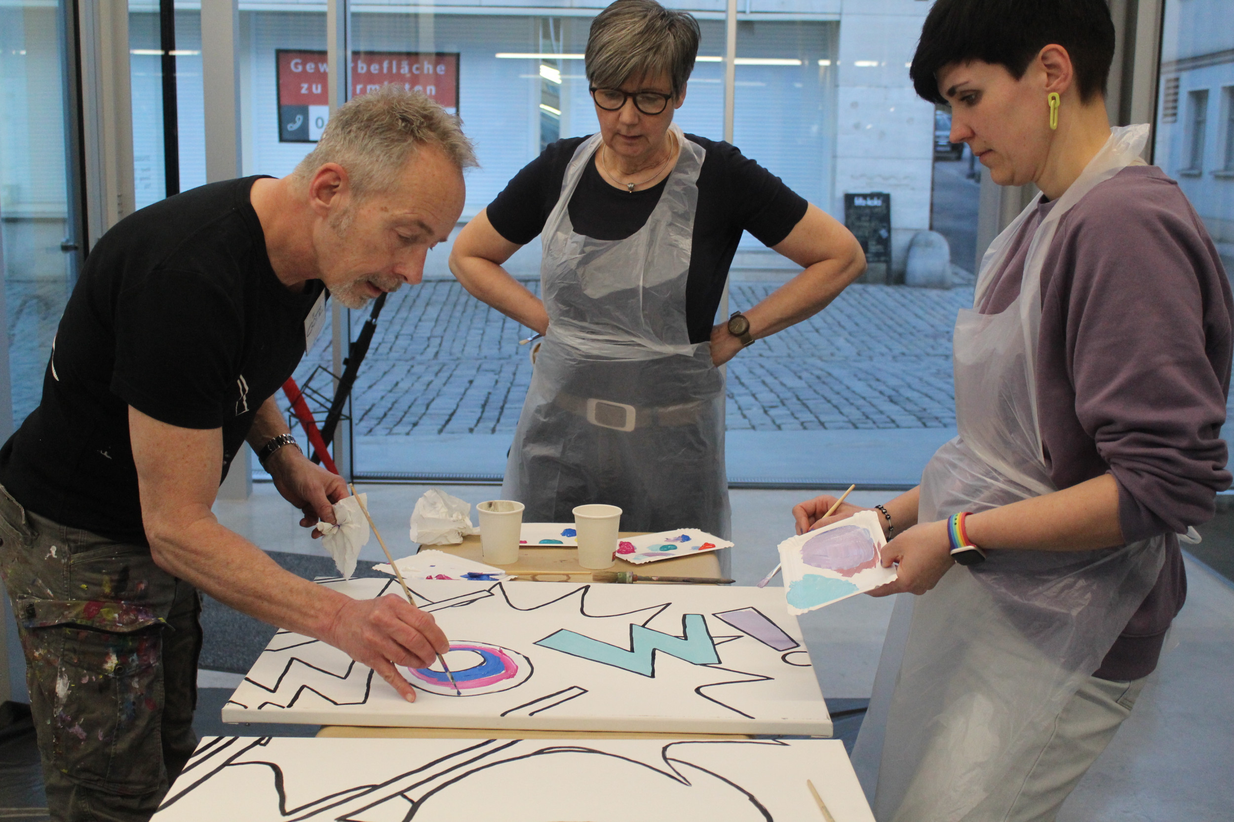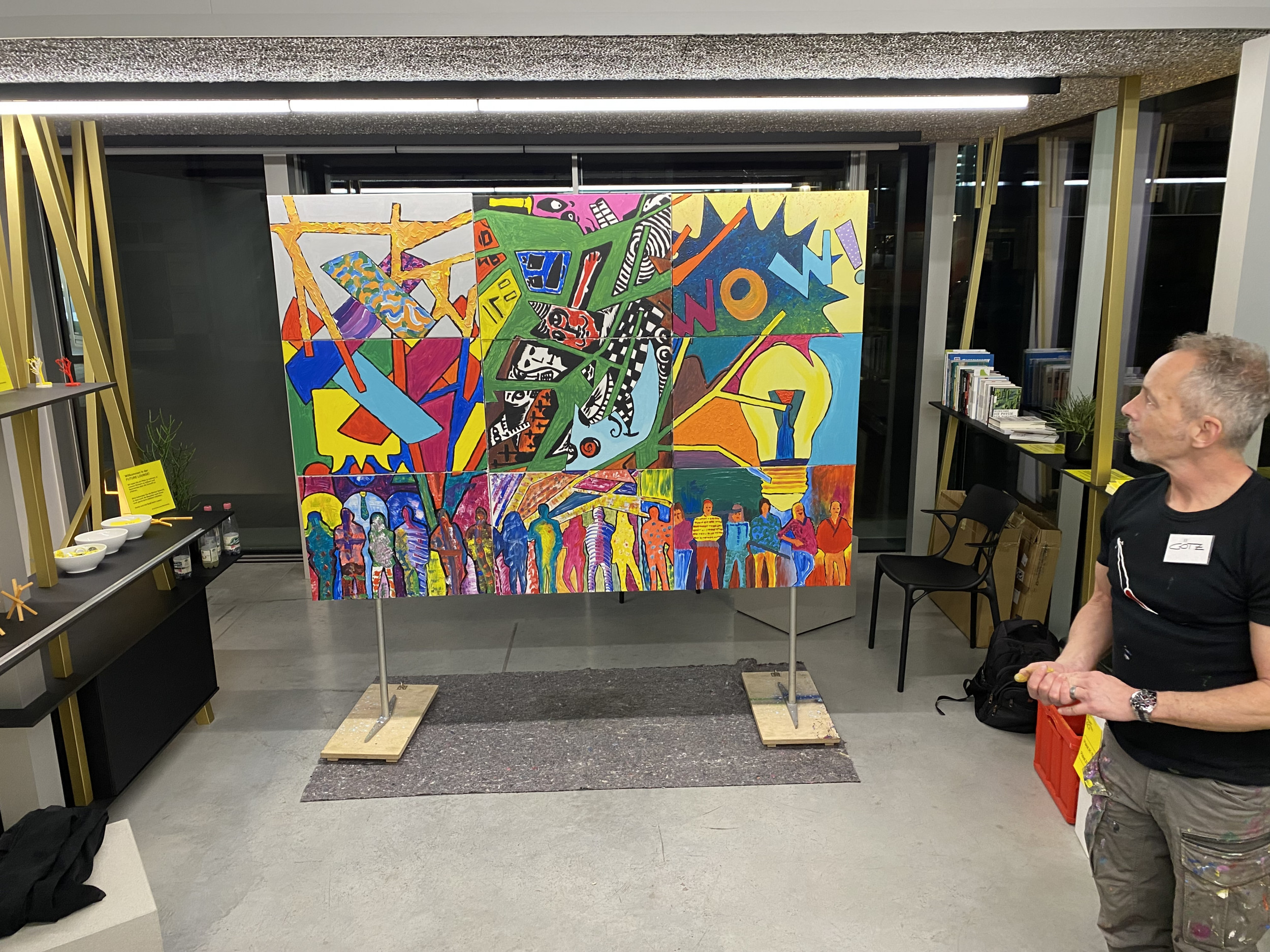 Am 21.03.24 besuchte uns der Künstler Götz Friedewald. Bei diesem kreativen Workshop mit Mitgliedern des Beirates und interessierten Gästen, wurden nicht nur Farben gemischt. Unser Teamgeist wurde geweckt und es entstand ein farbenfrohes, überraschendes Kunstwerk aus neun Einzelbildern.